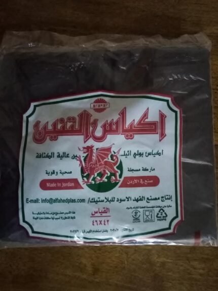 التنين – اكياس ماركة التنين حجم وسط قياس 42 * 46 / شوال سعة 10 ربطة / لون اسود