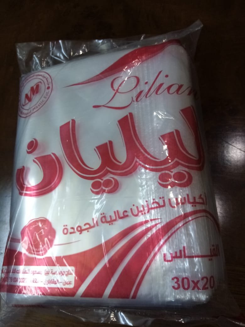 ليليان – اكياس نايلون شفاف / تفريز – ماركة ليليان قياس 20 * 30 / شوال وزن 10 كيلو / سعة 10 ربطات كل ربطة وزن 1 كيلو