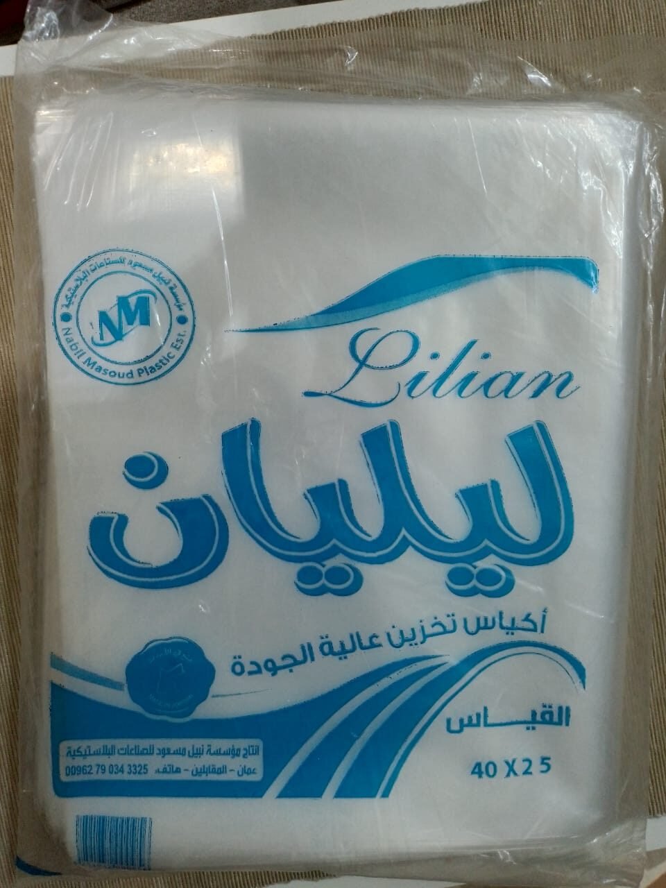 ليليان – اكياس نايلون شفاف / تفريز – ماركة ليليان قياس 25 * 40 / شوال وزن 10 كيلو / سعة 10 ربطات كل ربطة وزن 1 كيلو