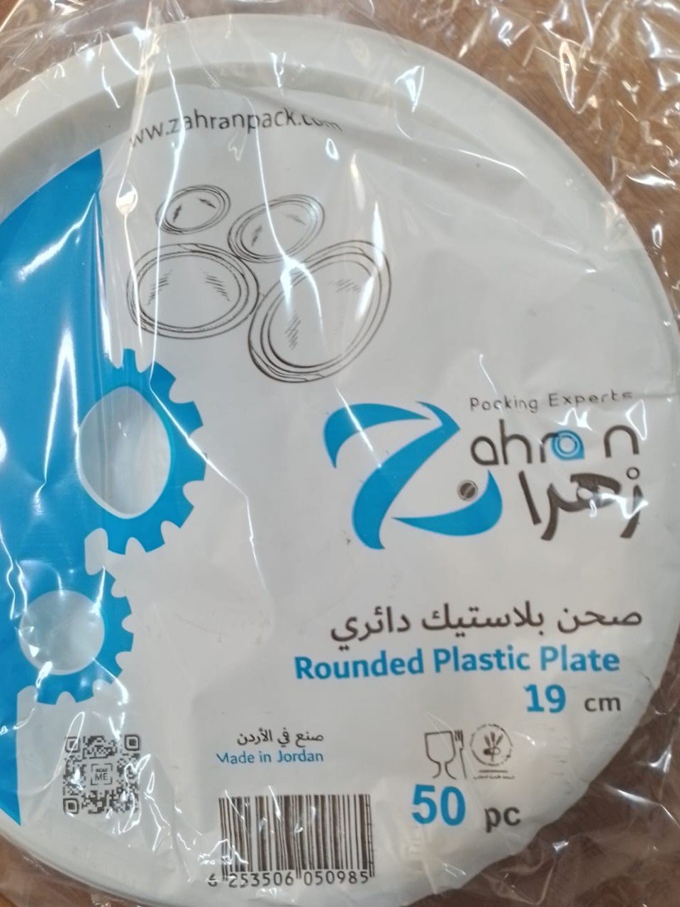 صحون بلاستيك قياس 17 سم / ماركة زهران / العبوة : كرتونة سعة 1000 صحن 9.50 د.ا